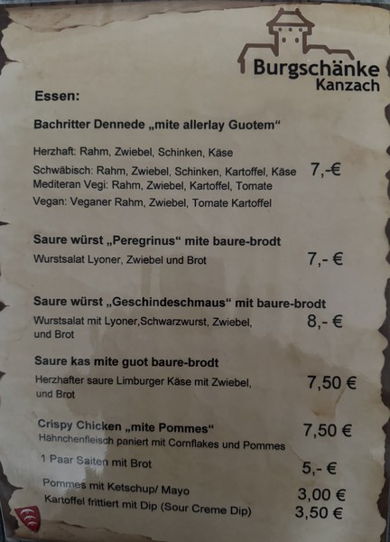 Vom 23. August bis 26. Oktober öffnet unsere Burgschänke jeden Samstag von 14 bis 20 Uhr und jeden Sonntag von 11 bis 18 Uhr. Gäste können sich neben Getränken über eine Auswahl an Kuchen, aber auch herzhaften Gerichten wie Dennede, Pommes oder Schnitzel in historischem Ambiente freuen.